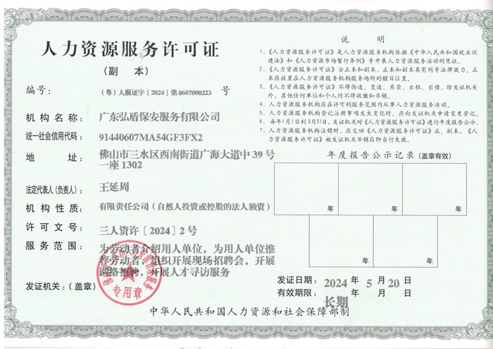 • 勞務派遣經營許可證